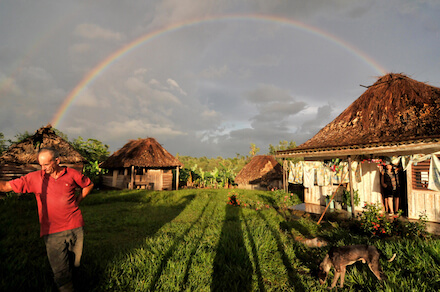 Im Vordergrund seiner Erzählungen steht jedoch immer die Begegnung mit den Menschen. In den Straßen Havannas mit ihrem langsam zerfallendem Charme, begegnet er Santeria Priestern und Schachmeistern, in der traumhaft anmutenden Naturlandschaft um Viñales sind es Begegnungen mit Tabakbauern & Künstlern, die ihm das Land näher bringen. Er präsentiert außerdem atemberaubende Naturaufnahmen und beeindruckende Städte-Portraits. In seinen Geschichten spürt man den Rhythmus eines Landes, dass zwischen Revolution, Armut und ungebrochener Lebensfreude schwingt.